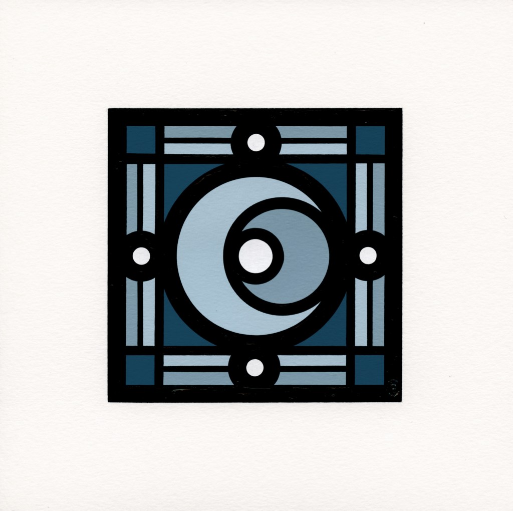 Image on left is titled Phases. Image on right is titled Falling into Place. Both will be for sale at $100 with 20% donated to the UW Hospital and Clinics. They are framed and measure at 8.75″ x 8.75″ x 1.25″. Acrylic paint on heavy watercolor paper.